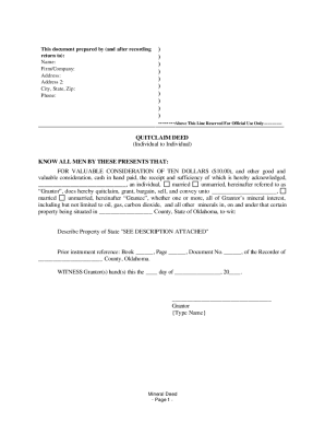 Quit Claim Mineral Deed Form Fill Out And Sign Printable Pdf Template Signnow
